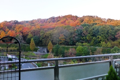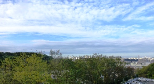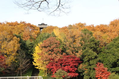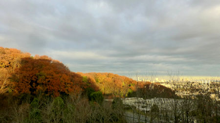 少し、葉が落ちてきたので、いくらか、府中の街並みも見えるようになりました。 |