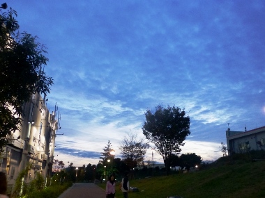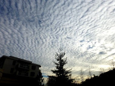 空一杯の雲がすばらしい!買い物終えておもてに出ると、日が落ちてきれいな空でした。