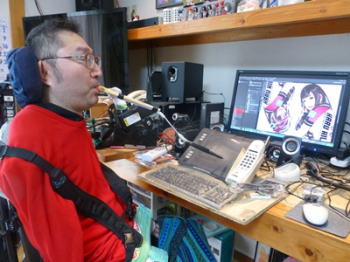 パソコン操作をして絵を描き、プロの