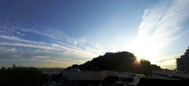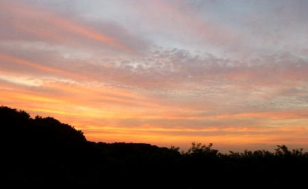 神社のある小さな山があるので、我が家からの夏の日の出は、実際の日の出より遅くなります。
