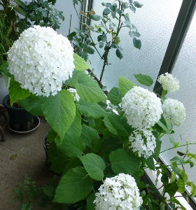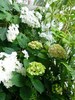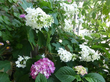 ポーチのカシワバアジサイと、