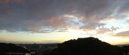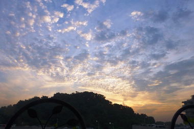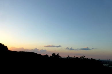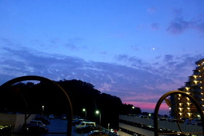 AM 4:25 夜明け前の東の空の三日月(ポーチから)