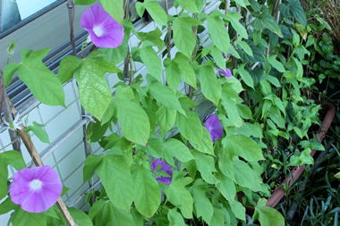 ヘブンリーブルーは 秋まで咲き続けるけれど、咲き始めも遅いです。 |