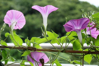 西洋朝顔のヘブンリーブルーの青い色はとても美しい。