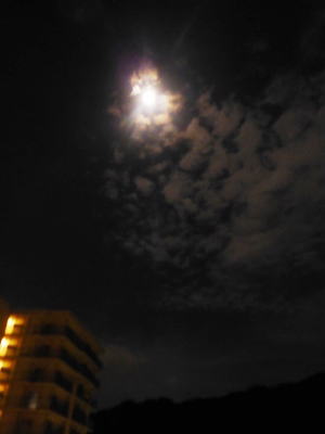 (2) 10月27日 0:07分 南の空 (ベランダから) 雲に囲まれた輝く月