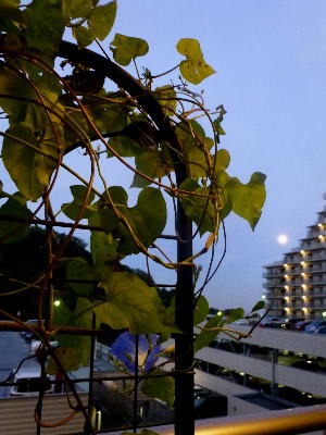 ・(1) 10月26日 17:30分 東の空 (ポーチから) 朝顔Ⅰ輪と月