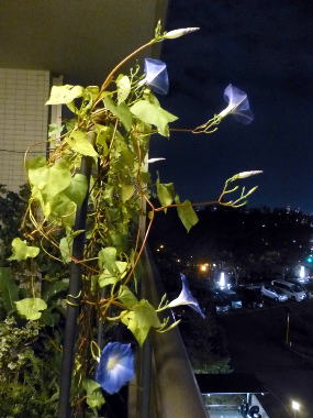 日本人の感覚では、今頃咲くのでは、朝顔という感じがしませんね。 |