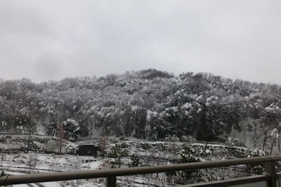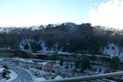 | ベランダからの城山雪景色 ( AM 7:00ごろ) |
