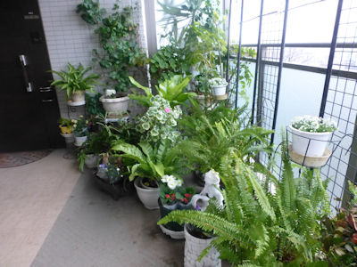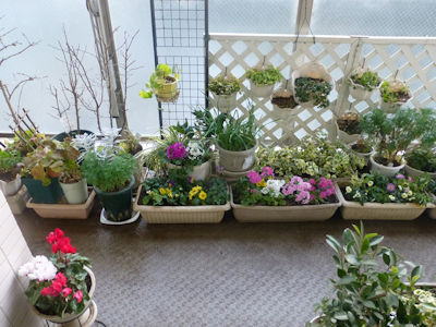 ポリアンサ>などで、寂しくなったベランダを飾っています。 |