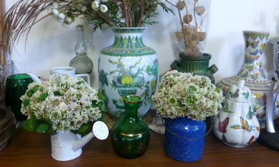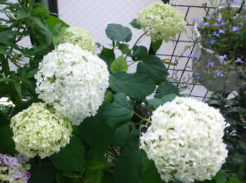 黄緑色だったアナベルも、全部の花がまっしろになりました。 |