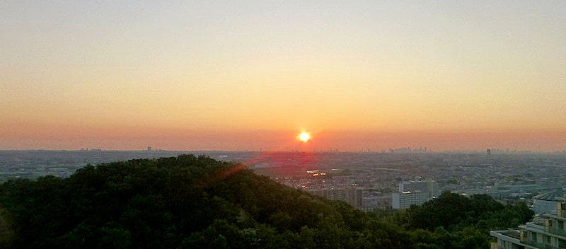 気がむいたので、何年ぶりかで14階の非常階段から、日の出の写真を撮ってきました。