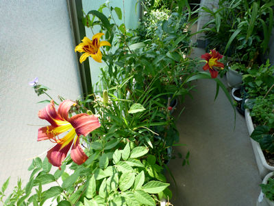 ベランダの様子 ( ↖ 東に向かって) ( ↗ 西に向かって)