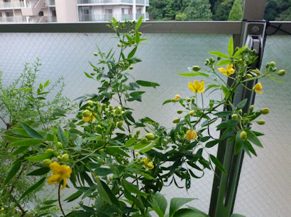 何度も羽ばたいてから、別の鉢まで飛んで行き、しばらくしたらベランダから