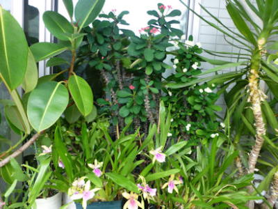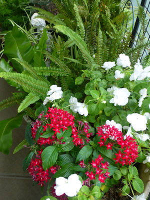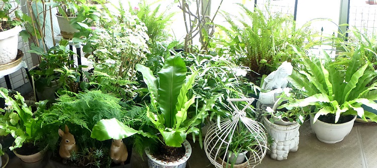 玄関ポーチは、今年は花は少ないですが、シダを中心に緑がきれいです。