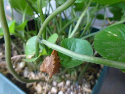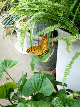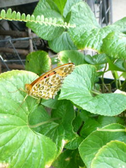 まだそのままでしたが、スミレの葉の間に蝶が、、、