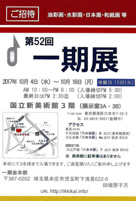 今年の一期展は、10月4日~16日(10日休館日)です。