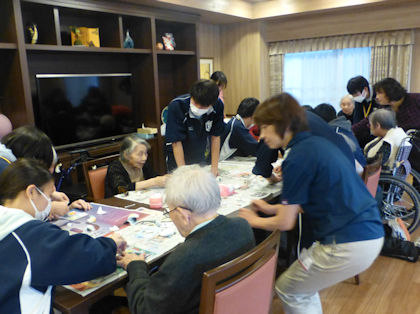ホームのホールの壁に面白い絵が飾ってあるので、