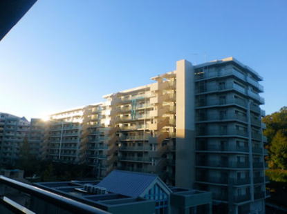 でも、残念ながらいつまでたっても右側のマンション東棟の陰で見えないので、