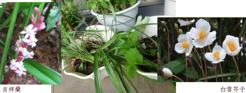 ↑ いただいた吉祥蘭と白雪芥子(真中の写真の2つの鉢です)