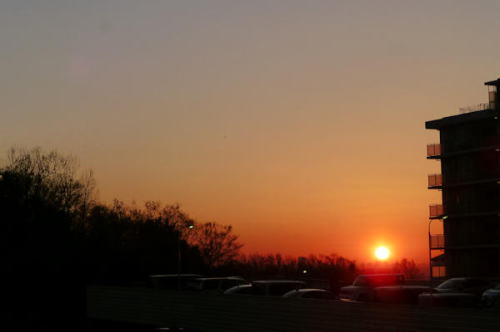 マンションベランダから下には、道路をはさんで元の自宅とその庭の養蜂所が見え、