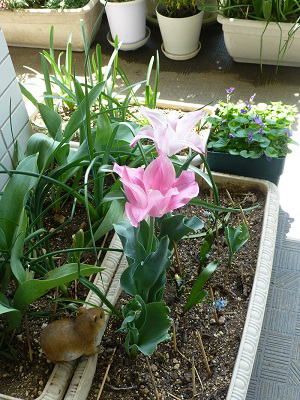 花の咲きだしたチューリップを次々と根元から食いちぎっていました。