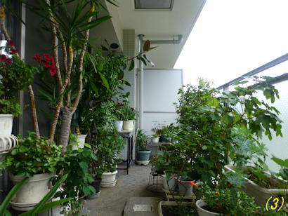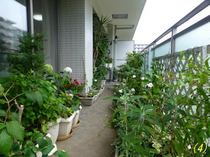 ↑ (1)(2)ポーチ(東向き)も (3)(4)ベランダ(南~西向き)も緑が多くなりました。