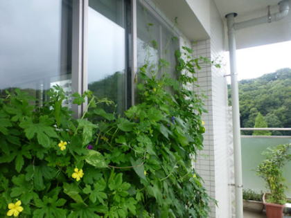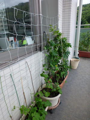 5月の連休の時、稲城市民祭でもらったゴーヤの苗が育ってきました。