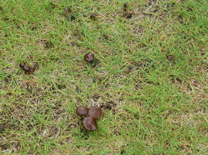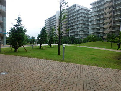 中庭の通路の両脇の芝生コーナーのあちこちにキノコが生えていました。 |