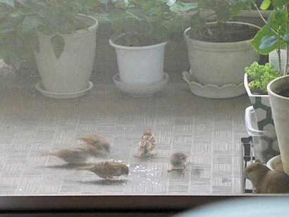 最近雀たちがベランダに