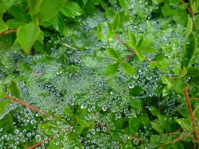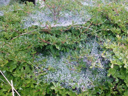 | ↑街路樹の蜘蛛の巣に水滴、とてもきれいでした。 |