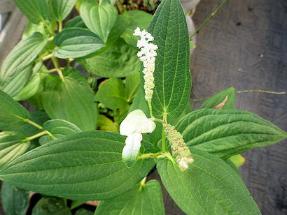←ハンゲショウの花が咲いています。