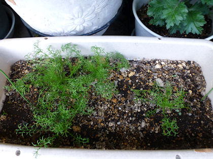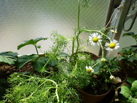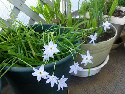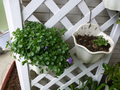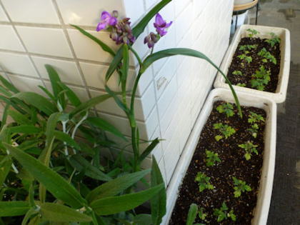 後ろの鉢は、花は咲いていませんが葉は元気です。