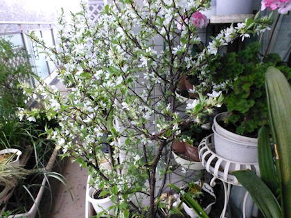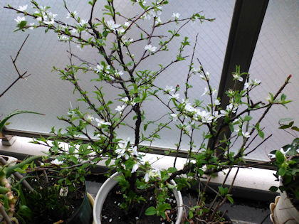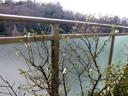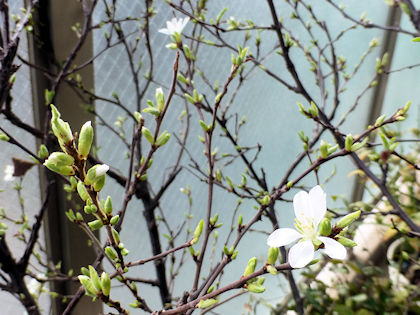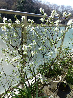 毎年、ベランダに春を告げてくれるユスラウメの花が咲くのは、とても楽しみです。