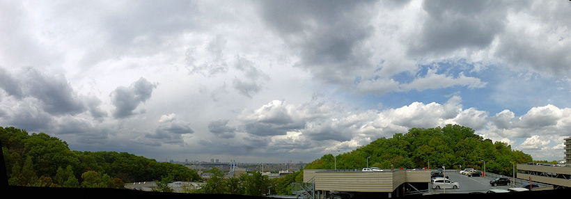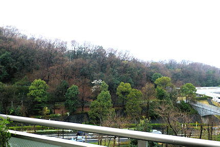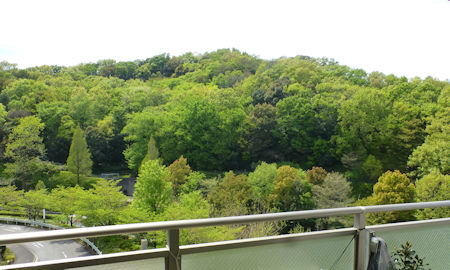 裏山から歩道橋を渡り、城山の中を通ってスーパーまで行けば