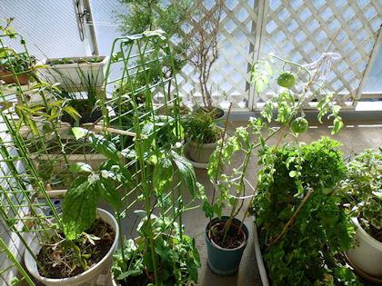 今日はとても良いお天気なので、トマトと源平カズラを表に出し日にあてました。