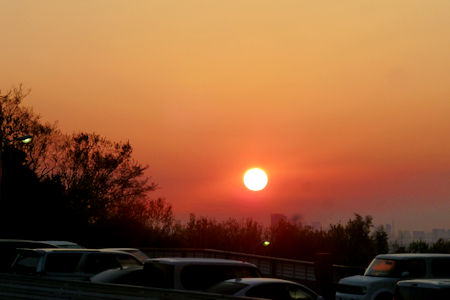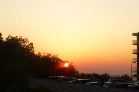 春秋は、間の都心のビル群のうしろから昇ってきます。