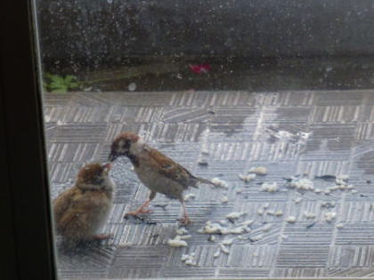 | ↑ふっくらしている方が小雀です。親より大きく見えます。 |