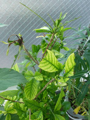 トケイソウを両隣の源平カズラとアメリカヅタのフェンスにまで延長していたのですが、