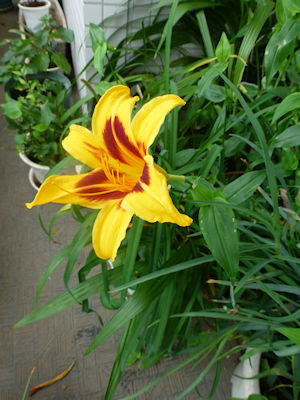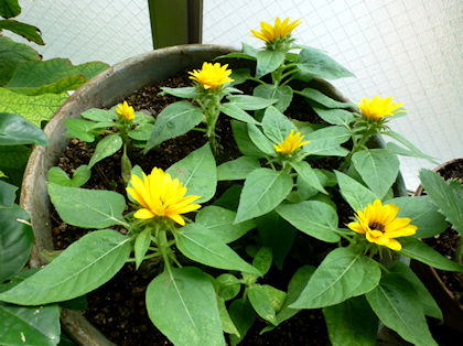 茎も一株に3~4本あったので、この黄色と渋い色合いの2鉢が