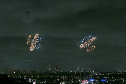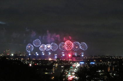 ↓府中競馬場の花火大会です。(ベランダから)