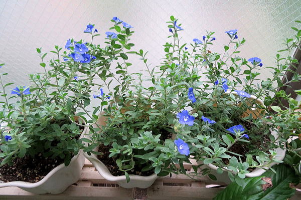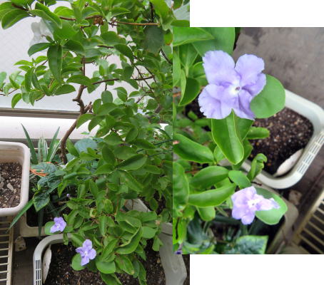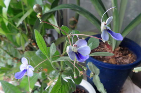 (4)挿し木したまだ小さい株のブルーエルフィンが咲きました。元の株は、大きく育って