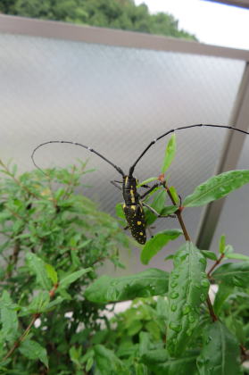 ベランダにカミキリムシがいました。