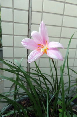 ↑爽やかで上品なピンク色の夏水仙が一輪!