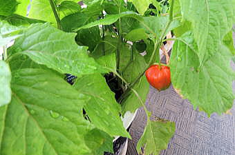 ほおずきも赤くなってきました。小さな実です。 |