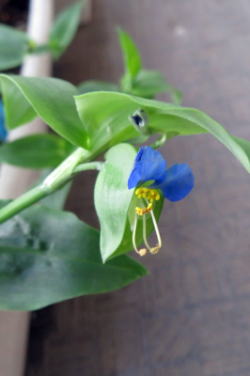 ↑ 露草と水引が、あちこちの鉢から芽を出し咲いています。