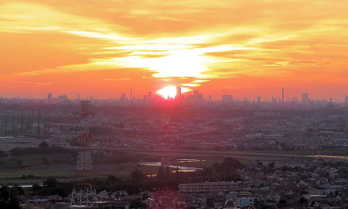 ↑ 日没前の北の空 (18:21分)(今日の東京の日の入り 18:47分) |