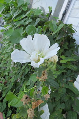 ↑ タチアオイ 、下から順番に咲いてきて最期の一輪です。