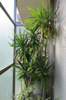 小さな鉢植えのユッカが13年経つうちに2鉢になりこんなに大きくなりました。