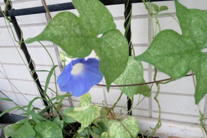西洋朝顔のヘブンリーブルーの青色がとても美しいので、今年は沢山撒いた