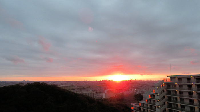 ↑14階からの日の出(4:43分) <今日の東京の日の出 4:43分> |